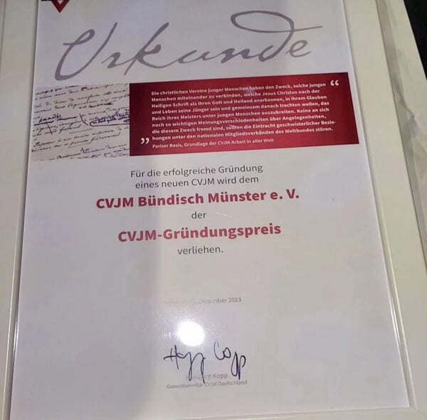 - Gründungspreis für CVJM Bündisch Münster